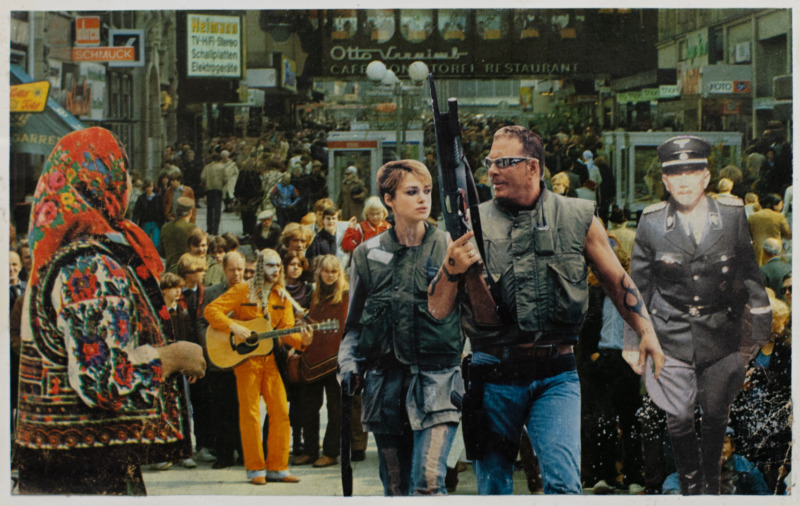 He assembled them with the intention of making films. Starting from a native talent for drawing and driven by the desire to direct or act in movies, he created a proto-pop imaginary universe that was twenty years ahead of the Romanian public’s capacity to receive it, pop aesthetics only becoming a post-1989 reality in Romania, as a direct consequence of consumer society. With minimal means, he produces a cinematic frame that tells an entire story each time. All his collages are a very particular encounter between pop art and a surrealist-Dada undercurrent. And everything breathes a melancholic air of the communist gulag, where the world of film and the world of brands seemed the only possible sites of freedom.