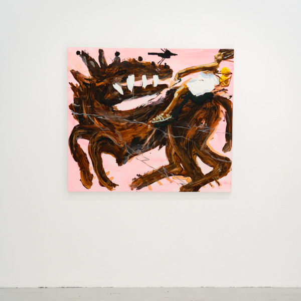 Mattia Guarnera-MacCarthy’s paintings blend elements of sports, comics, and pop culture to examine themes of identity, performance, and vulnerability, revealing the human truths beneath the polished surface of spectacle.
